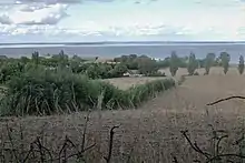 Vejen ned til badestranden "Skåret", med Det Fynske Øhav i baggrunden.