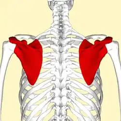 Skulderbladet danner bagsiden af skulderåget. Hos mennesker, er det en flad knogle, der nærmest er triangulær i formen, placeret på det posterolaterale aspekt af brystkassen.[2]