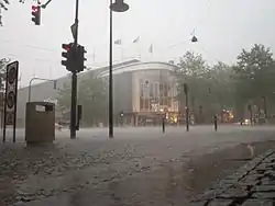 København blev ramt af regn så intens, at mange gader stod under vand. Det samme gjaldt kældre og lavtliggende stuelejligheder.[2]