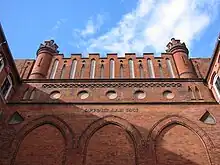 Skydebanemuren er tegnet i en borglignende, nygotisk stil og er opført i røde teglsten. Blandt de mange dekorative detaljer kan nævnes to fialer som flankerer den centrale åbning samt fyldninger. Selve muren ligger tilbagetrukket fra Istedgade, men flankeres af to boligejendomme med Sidegavle mod gaden som er en integreret del af muren.[2]