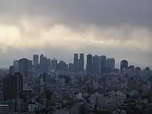- Silhuet: En skyline hvor bygningerne flyder sammen i en sort form, så kun deres omrids fremtræder.