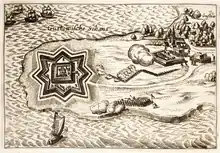 | 1.000–1.500 infanterister 2.000 cavalerister[1] | 5.000 –5.400 mand med fem morterer og 16 kanoner | ||||||