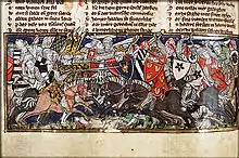 - "For hvis vi tror vore ældre, steg en bæk som løb mellem de lave højder gennem sletten på grund af blodet fra nedslagtningen. Den gik ikke over sine bredder på grund af regn, som bække vanligvis gør, men voksede af en mærkelig strøm og blev til en lille flod på grund af blodet. De, som blev såret og måtte slukke deres tørst, drak vand blandet med kropsvæsker. De var tvunget til at drikke det, de troede var blod, som var løbet ud af deres egne sår."