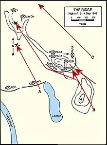 - Christ, p. 176, Smith, Bloody Ridge, p. 103. Faldskærmstropperne ankom til Guadalcanal den 2. september.
