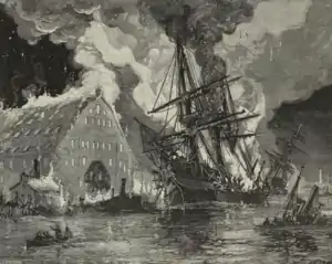 I foråret 1861 lykkedes det hærstyrker fra Sydstaterne at erobre Norfolk i Virginia og området på sydsiden af Hampton Roads. Unionsstyrkerne blev narret til at trække sig tilbage fra flådehavnen i Norfolk af sydstatsstyrker under ledelse af jernbanepræsidenten William Mahone. I forbindelse med tilbagetrækningen blev flådeværftet brændt af, hvilket samtidig betød at 9 skibe blev ødelagt – heriblandt fregatten USS Merrimack fra 1855, som dog kun udbrændte ned til vandlinien.