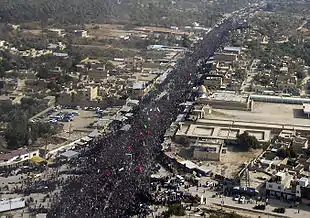 Fra de forskellige byer i Irak drager millionvis af folk til fods i optog til byen Karbala. Dette er blevet brugt af terrorister de seneste år, som skydeskive for deres aktioner.[6] I muharram/januar 2009 var der over 7,5 millioner pilgrimme i Karbala.[7]