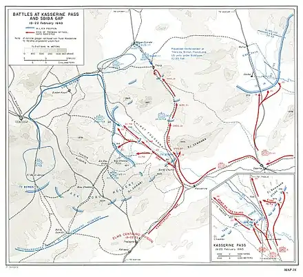 Da han så successen ved Sidi Bou Zid beordrede Rommel Afrikakorpsets kampgruppe til at angribe Gafsa den 15. februar. Men om natten mellem den 14. og 15. februar evakuerede forsvarerne Gafsa og adlød dermed Andersons ordre om at hovedforsvarslinjen skulle ligge i bakkerne omkring Feriana og at Gafsa ikke skulle forsvares mod et stort angreb.[12]