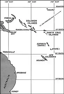 Den 7. august 1942 gik Vestallierede styrker i land på Guadalcanal, Tulagi og Floridaøerne på Salomonøerne. Landsætningerne havde til formål at forhindre japanerne i at bruge dem som baser, der kunne true forsyningsruterne mellem USA og Australien, at sikre sig øerne som udgangspunkt for et felttog der skulle isolere og eventuelt føre til erobring af den store japanske baser i Rabaul samtidig med at det kunne støtte det allierede felttog på Ny Guinea. Landsætningerne blev indledningen på det seks måneder lange slag om Guadalcanal.[6]