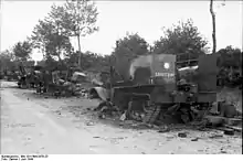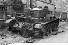 ![]() Kaptajn Paddy Victorys ødelagte "OP" Cromwell-kampvogn.[1] |