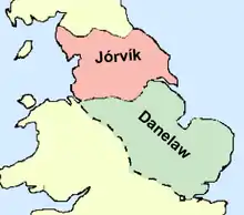 I York indsatte vikingerne en skyggekonge ved navn Ecgberht,[13] der regerede indtil 872, hvor et oprør drev ham i eksil i Mercia. Vikingen Halfdan Ragnarsson fik stoppet oprøret i 876, og besatte York og resten af Deira (sydøst Northumbria), og opdelte det blandt sine følgere.[13] Dette ledte til Kongeriget Jórvík, der eksisterede under vikingernes kontrol indtil 910, hvor det blev indtaget af angelsakserne.[14] Kongeriget blev generobret af vikingerne ved adskillige lejlighedre indtil 954, hvor det blev underlagt Wessex.[14] Der blev ikke foretaget nogle yderligere forsøg på at genetablere Kongeriget Northumbria.[15]