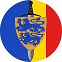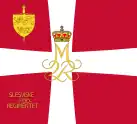 Regimentsmærket er et skjold med Slesvigs landsdelsvâben: to løver. Bagved sværd med fæstet opad. På dette Chr. VII's navnetal.