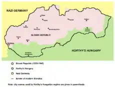 Den 14. marts 1939 blev den slovakiske republik grundlagt som en marionet for Tyskland indenfor det slovakiske område. Inden dette var en del af Slovakiet, som havde en betydelig ungarsk befolkningsgruppe, blevet erobret af den ungarske hær, som følge af den førske delingsaftale i Wien. Mindre dele af de omstridte områder med blandet polsk og slovakisk befolkning tilhørte Tyskland og Polen