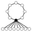 Det multiplikativt neutrale element er i cykelgrafen repræsenteret af den sorte cirkel. Cykelgrafen er en entydig repræsentation for alle grupper med orden mindre end eller lig 16.