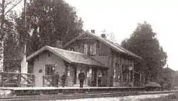 Stationsbygningen blev opført i 1872 efter tegninger af Georg Andreas Bull. Den brændte i 1982 men blev efterfølgende genopbygget.