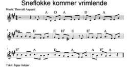 "Sneflokke kommer vrimlende" er en dansk sang skrevet af Jeppe Aakjær.