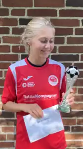 ![]() Sofia Weatherall med pokalen for "årets spiller" 2020/2021 for BSF. | |