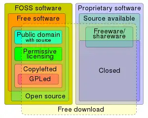 Der er flere organisationer i FOSS domæne, der laver retningslinjer og definitioner om software-licenser. Free Software Foundation fastholder ikke-udtømmende lister af softwarelicenser efter The Free Software Definition og licenser, som FSF mener er ikke-gratis af forskellige årsager.[2] FSF skelner desuden mellem fri software-licenser, der er forenelige eller uforenelige med valgte FSF licenser, copyleft GNU General Public License. The Open Source Initiative definerer en liste af certificerede open-source licenser efter deres Open Source-Definition.[3] Også Debian-projektet har en liste over de licenser, der følger deres Debians Retningslinjer for Fri Software.[4]