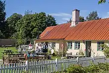 På gårdspladsen kan man sidde og nyde sin medbragte mad eller kaffe, alt imens høns og ænder render rundt om bordene. Det er ganske gratis at sidde på gårdspladsen, og opleve det hyggelige gårdmiljø, som emmer af historie og idyl.