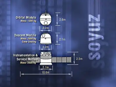 - SA (СА: спускаемый аппарат) — "Returmodul", omgivet af et varmeskjold.