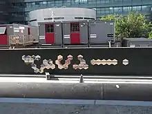 Hegnet om metrobyggepladsen (Frederiksberg Station) på Solbjerg Plads i færd med at blive udsmykket.