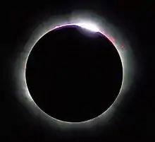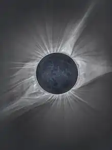 - I de få minutter en solformørkelse varer, får man en sjælden lejlighed til at studere Solens korona ("atmosfære"); en glødende "strøm" af plasma, der strømmer ud fra soloverfladen i stråler eller "totter". For at kunne studere denne korona har man konstrueret særlige teleskoper med en indbygget, ugennemsigtig skive, der dækker for solens stærke lys; et sådant instrument kaldes en koronagraf (eller koronograf).