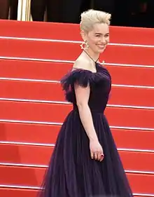- Emilia Clarke som Qi'ra, en gammel barndomsven af Han og senere en af Vos' folk.[22][23] Clarke beskrev sin figur således: "Hun har flere forskellige former, men dybest set kæmper hun bare for at holde sig i live. Hvis du har en virkelig fin dame i et virkeligt snavset miljø, så ved du at det fine dækker over nogle hårde ting."[16] Med hensyn til figurens forhold til Solo fortalte hun at "De voksede op som kammerater, dybest set. De voksede op som venner, som kumpaner. Der er selvfølgelig den romantiske side af sagen. Men de voksede op sammen. Så de var børn sammen.."[24]