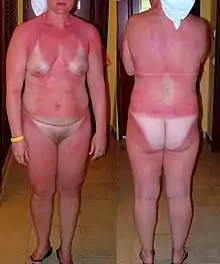 Solskoldning er skadelig for mennesker og menes at være skyld i mange tilfælde af hudkræft.