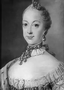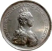 ![]() Portræt af Dronning Sophie Magdalene fra 1775 af Alexander Roslin. | |