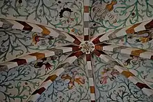 På korets hvælv og vægge fremkom 1934 spor af en kalkmalet dekoration, hvoraf hvælvets og korbuens afdækkedes og restaureredes 1941, mens underlaget for væggenes udmaling var så ødelagt, at malerierne her overkalkedes. Ved reparation fremkom endvidere to indvielseskors på skibets nordvæg samt på slutstenen i skibets vest hvælv et bomærkeskjold svarende til det i korets vest-hvælv. Kalkmalerierne, fra 1500—1525 er dekorationer som består af rankeværk med store kolbeblomster, småfrugter, vrængemasker og enkelte fugle. Øst-hvælvets slutsten er i pudsen formet som en stjerne, mens vest-hvælvets bærer malerens bomærke; midt i dette hvælvs fire kapper lindes de fire evangelisttegn, i nord ørnen, i øst englen, i syd løven og i vest oksen. Ribberne har røde, gule og grå bånd vekslende med hvide, mens rankeværket er grønt med sorte konturer af farver er i øvrigt anvendt mørk og lys okker, sort, dodenkop, mønje og cinnober samt den sjældent forekommende blå farve, som genfindes i Broager Kirke. På nordre korbuevange afdækkedes desuden konturerne af to ca. 35 cm høje figurer, en let skrævende kriger med en kvinde ved sin side, alt omgivet af en 10 cm bred ramme, hvis øvre kant løb langs kragstenen. Ingen farver var synlige, blot »Figurernes Omrids og Flader såvel som rammens stod afrevne som en grå, sandet Flade«. Hvidtebunden uden om figurerne var derimod velbevaret. Det er muligvis resterne af et aftrukket maleri eller aftrykket af en reliefformet dekoration, i hvilken hvidtebunden har dannet den synlige baggrund. Under restaureringen fremkom endvidere bag alteret på øst-hvælvets øst-kapper en senere, sort begravelseskalkning samt oven på et par hvidtelag et groftmalet, blåt draperi med en bred orange skillelinje mellem draperiet og den blåkalkede væg; antagelig overkalket 1863.