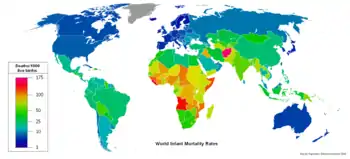 - "World Infant Mortality Rates in 2008". Arkiveret fra originalen 27. juli 2011. Hentet 2. december 2009.