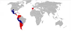 i 19 spansktalende lande: samt i 7 lande og territorier, hvor spansk tales af et mindretal:  | |