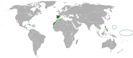 ![]() Områder der har hørt under det Spanske imperium.  | |||||||||||||||
