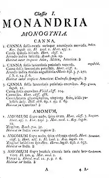 Særlig betydning har "artsepitetet", som han markerede ude i siden for hver art, og som var en nyskabelse i forhold til hans tidligere værker. Slægtsnavnet og artsepitetet danner tilsammen artens toleddede navn, sådan som det stadig bruges ifølge den gældende botaniske nomenklatur. Linnés beskrivelse af Spiselig Kanna (Canna indica) ser ud som følger: