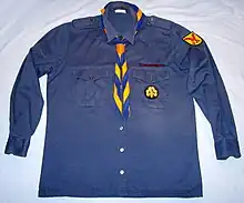 På skjorten bæres korps-, divisions- og gruppemærker, der viser, hvor man er fra, hvad man kan (duelighedstegn) samt mærker, der viser om man er patruljeleder eller -assistent, og hvad man har deltaget i (lejrmærker m.v.) samt mærker, der viser, hvor længe man har været spejder (årsstjerner).