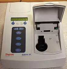 Spektrofotometri anvendes ofte til kvantitative analyser, der kræver et spektrofotometer. Man nedsætter en opløsning i spektrofotometret og dermed sendes der lys igennem opløsningen og bølgelængden af det tilbagekastede lys bliver målt.