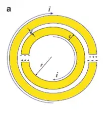 Et magnetisk flux gennemtrængende metalringene vil inducerer roterende strømme i ringene, hvilket producerer deres egne flux til at øge eller minske feltet (afhængig af SRR resonans egenskaberne). Dette feltmønster er dipolært. Grundet revnerne i ringene kan strukturen understøtte resonante bølgelængder meget større end diameteren af ringene. Det ville ikke ske i lukkede ringe. Det lille gab mellem ringene producerer store kapacitans værdier hvilket minsker den resonerende frekvens, da tidskonstanten er stor. Strukturens dimensioner er små sammenlignet med den resontante bølgelængde. Dette resulterer i lave strålingsmæssige tab, og meget høje Q-faktorer.