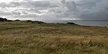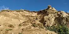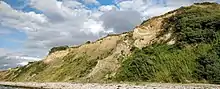 Øverst på klinten findes Spodsbjerg Fyr og et klitlandskab.