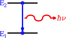 Hvis lyskilden (for eksempel et atom eller en atomkerne) er i en exciteret tilstand med energien og henfalder til en ny tilstand med energien , vil forskellen i energi svare til fotonens energiindhold: