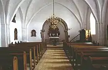 Korbuen er bevaret med profilerede kragsten og sokkel. I sengotisk tid fik kor og skib indbygget krydshvælv. I korhvælvets østkappe er afdækket kalkmalerier fra omkring 1500, en enhjørning og en løve. Altertavlen er fra 1676 og har navnetræk for Christen Fischer og Mette Harder. Prædikestolen er ligeledes fra 1676.