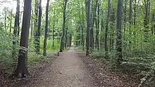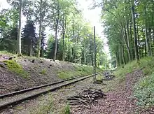 Efter slutningen på den første sæson påbegyndtes arbejdet med den normalsporede strækning til vogne fra blandt andet København.[220] Den ca. 1,5 km lange strækning kom til at ligge i forlængelse af den metersporede strækning fra museumsområdet til en endestation ved Eilers Eg i Højbjerg Skove, hvor seks skovveje mødes. De første ca. 800 m af strækningen kom til at forløbe mellem marker og resten gennem skoven. Fra ca. 200 til ca. 830 m fra remisen er der en svag kurve, mens resten af strækningen er lige. Ca. 1.200 m fra remisen er der en bro over strækningen fra den Sjællandske Midtbanes tid. Strækningen blev planlagt som enkeltsporet med vendesløjfer ved endestationerne og krydsningsspor ca. 800 og 1.300 m fra remisen. På de første ca. 300 m af strækningen skulle der være dobbeltspor. Sammenlagt betød det, at der ville kunne køres hvert 5., 10, 15. eller 20. minut efter behov. Men da anlægsarbejdet ville blive omfattende, ville man begynde med en enkeltsporet strækning til det første krydsningsspor. Den ville så kun kunne trafikeres af en vogn ad gangen, da resten af strækningen og det andet spor til dobbeltsporet måtte vente til anden omgang. På sigt kunne det desuden blive aktuelt at give den dobbeltsporede strækning et gademæssigt præg.[221]