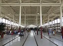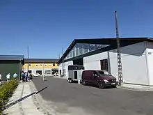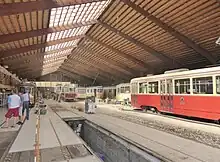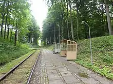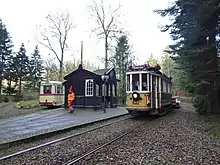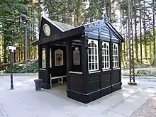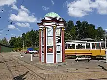 Ved det nye stoppested blev der opsat en ventesalsbygning, der oprindeligt havde stået ved Vestre Kirkegård i København. Den var blevet opført i 1893, men efter at busserne overtog betjeningen af kirkegården i 1956, var den blevet flyttet ind på denne og benyttet som redskabsskur.[247][248] I 1974 blev den overtaget af Sporvejshistorisk Selskab og flyttet til museet, hvor den blev den første bygning.[248][249] Her stod den på forpladsen i nogle år, indtil den blev flyttet til det nye stoppested.[248] Indenfor blev der indrettet en lille udstilling med billeder fra den Sjællandske Midtbane.[250] I 2008-2010 var ventesalen taget ned for en omfattende renovering på Københavns Tekniske Skole, da træværket var meget medtaget, men derefter blev den atter opsat ved stoppestedet.[251][252]