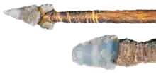 Konstruktion og brug af spyd er også benyttet af chimpansearten Pan troglodytes verus. Chimpanser nær Kédougou i Senegal er observeret, mens de konstruerede spyd ved at brække lige grene af træer, hive barken og pindene af, og benytte tænderne til at gøre den ene ende skarp. De kan benytte spyddene til at jage sovende galagoer i huller.[1] Orangutanger har også benyttet spyd til at fiske efter at have observeret mennesker fiske med spyd.[2]
