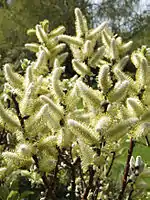 Bladende er ovale med svagt takket rand. Oversiden er mørkegrøn, mens undersiden er blågrøn med netagtig tegning. Akselbladene er ægformede med takket rand. Hanraklerne er sølvskinnende "gæslinger" med gule eller rødlige støvknapper. Hunraklerne kommer først frem efter løvspring, og de er grønne af fremstående grifler. Frøene er nødder med lange frøhaler. Spireevnen tabes på få timer.