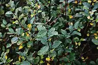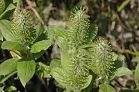 Bladende er ovale med svagt takket rand. Oversiden er mørkegrøn, mens undersiden er blågrøn med netagtig tegning. Akselbladene er ægformede med takket rand. Hanraklerne er sølvskinnende "gæslinger" med gule eller rødlige støvknapper. Hunraklerne kommer først frem efter løvspring, og de er grønne af fremstående grifler. Frøene er nødder med lange frøhaler. Spireevnen tabes på få timer.