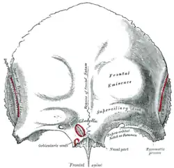 Squama frontalis har to overflader; den ydre og den indre overflade.