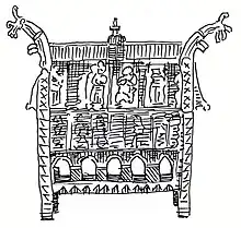 Skitse af et antaget relikvieskrin fra middelalderen.