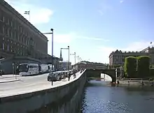 Stallkanalen set fra øst med Slottskajen og den sydlige hvælving af Norrbro, maj 2008