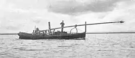 I Danmark foregik udviklingen af miner og torpedoer som et samarbejde mellem Marinen og hæren, der havde ansvaret for forsvaret af København på både land- og søsiden. Hos hæren begyndte Ingeniørkorpsets Sømineafdeling i 1868 forsøg med at anbringe stangtorpedoer i stævnen af rofartøjer, og i 1869 fik Marinens søartillerister besked om at sætte sig ind i stangtorpedoernes funktion, så de rofartøjer, der var ombord på skibene, kunne forsynes med stangtorpedoer. I 1870'erne blev de både, der var medbragt de større skibe afløst af dampbarkasser, så i 1879 gav Marineministeriet meddelelse om, at der ikke længere skulle være stangtorpedoer i robådene.[11] Stangtorpedoerne blev fortsat brugt i dampbådene, og i 1889 blev to af de ældste torpedobåde igen udstyret med dem, og der blev bygget fire nye patruljebåde, som også havde stangtorpedoer som angrebsvåben.[12] Først i 1919 gav Marineministeriet besked om, at stangtorpedoerne ikke længere skulle anvendes.[11]