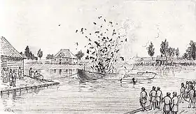 Unionens første vellykkede aktion med stangtorpedoer fulgte i oktober samme år, da løjtnant Cushing og hans besætning sejlede en lille dampbåd op ad Roanoke-floden og sænkede konføderationens pansrede vædderskib CSS Albemarle, der ellers havde domineret skibsfarten på floden. Cushings båd gik også tabt ved aktionen, men de fleste besætningsmedlemmer overlevede.[4]
