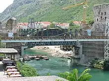 Under borgerkrigen i Jugoslavien blev broen sprængt i stykker af kroatiske styrker den 9. november 1993. Efter krigen blev broen genopbygget, rekonstrueret af originalsten hentet op fra floden under broen. Den genopbyggede bro blev åbnet den 23. juli 2004.